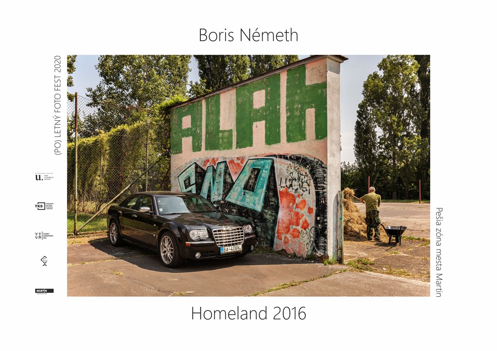 "je projektom o nacionalizme v nás. Môžeme ho však čítať aj ako portrét rozkladajúcej sa spoločnosti, či ako cyklus o hľadaní národnej identity. Nemá podobu klasického dokumentu, je skôr sériou vizuálnych reprezentácií aktuálnych celospoločenských nálad – strachu, hnevu, rozčarovania, beznádeje. Boris Németh sa vo fotografiách vyhýba reportážnej doslovnosti a priamočiarosti, očisťuje ich od prvoplánových metafor či ľahko čitateľných príbehov. Ak zobrazuje jedinca, nekonkretizuje ho. Fotografuje ho zväčša z diaľky, s tvárou odvrátenou od objektívu alebo ho izoluje v bizarných prostrediach. Premieňa ho na symbol človeka utláčaného systémom, splývajúceho s davom alebo dobrovoľne opúšťajúceho spoločnosť. Aj do zátiší vkladá obrazy nefungujúceho systému, náznaky silnejúcich extrémistických prejavov a pokrivenosti vlasteneckého cítenia. Tradičný slovenský symbol – Jánošík, je odrazu len vyprázdnenou formou, do ktorej si môžeme dosadiť mýtus uspôsobený podľa našej ľubovôle. Aj muchotrávka uprostred vypusteného bazénu je len umelým parazitujúcim elementom. Výsledky prieskumu verejnej mienky – Eurobarometer z jesene 2015 priniesli zistenie, že Slováci majú spomedzi krajín Európy najmenšie pochopenie pre spolužitie s inými náboženskými, etnickými či sexuálnymi skupinami. Narastajúce prejavy xenofóbie a radikálne pravicových názorov tieto výsledky len potvrdzujú. Kedy sme prestali byť tým povestným pohostinným národom? A boli sme ním niekedy vôbec? Cieľom projektu Homeland nie je moralizovať, ale skôr znepokojiť, zneistiť. Pretože práve to môže byť cesta, vedúca k diskusii a k odpovedi na otázku, ktorú podvedome vyvoláva záverečná fotografia katalógu: Kto a čo všetko môže spolunažívať v jednej domovine?" Michaela Pašteková, kurátor