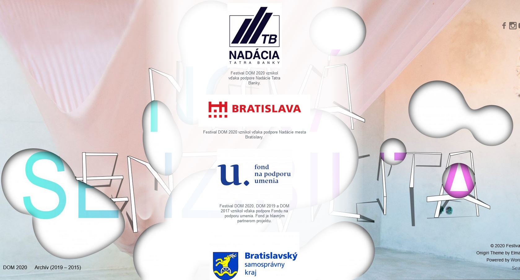 Projekt DOM 2020 Nová Senzibilita je 6. ročník festivalu DOM. Prostredníctvom rôznorodého intermediálneho umeleckého vyjadrenia sa zameriava na podoby novej senzibility vo vizuálnom umení ale i sociálno-politicko-vedecko-ekologických kontextoch. Podujatie (výstava a sprievodný program) prebehne 28.-30.8. 2020 v Pistoriho paláci v Bratislave.
