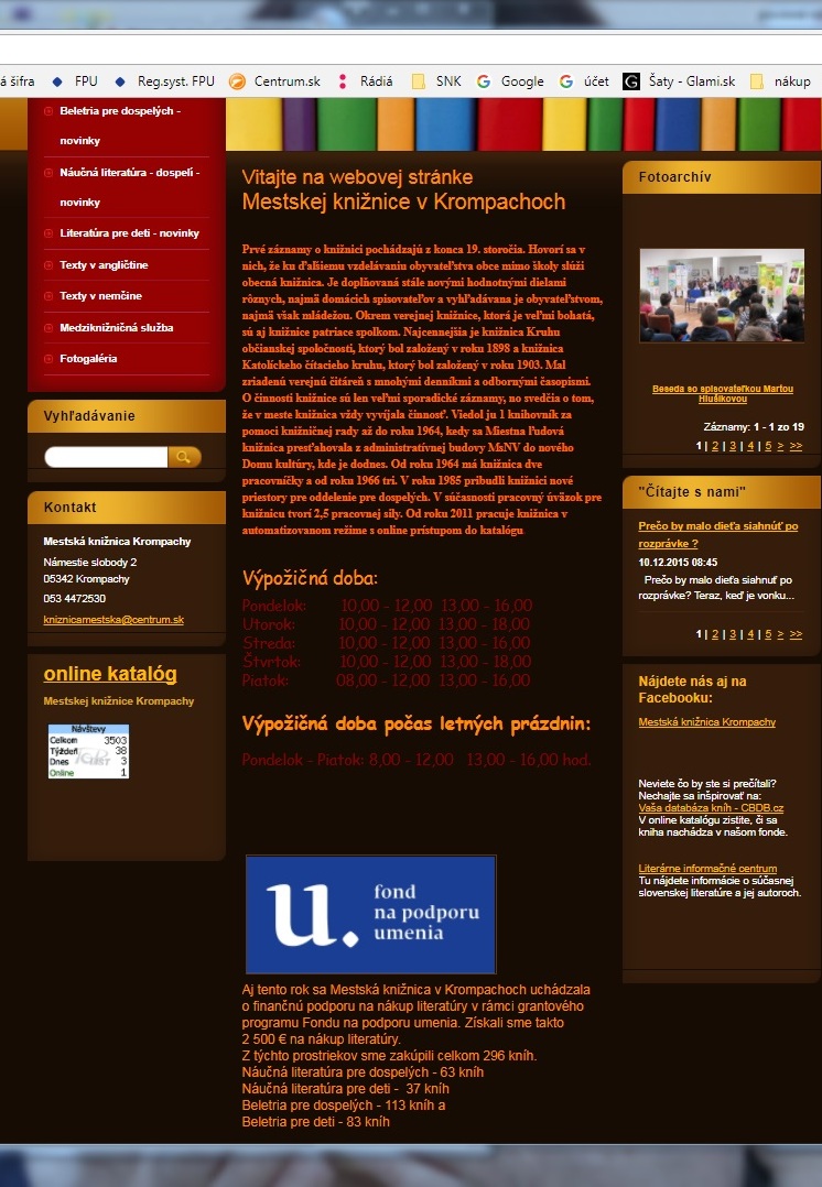 čitateľov a stúpajúci trend v počte výpožičiek, čo je určite aj zásluhou akvizície s podporou FPU.